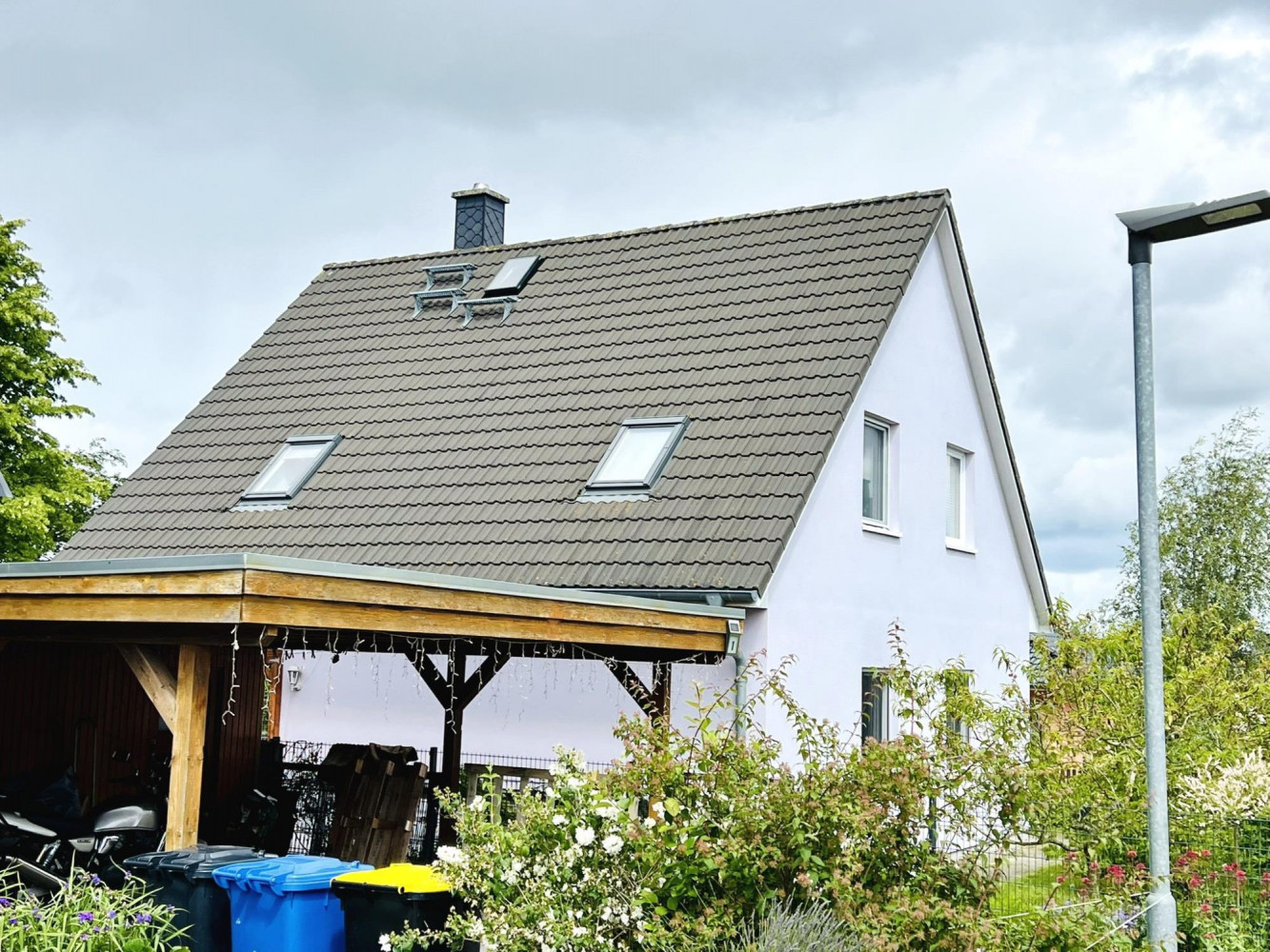 Ein praktischer Carport mit separatem Abstellbereich rundet das Angebot ab.