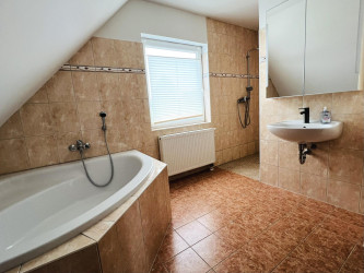 Im Obergeschoss erwarten Sie drei individuelle Zimmer. Hier findet sich auch das geschmackvoll gestaltete Vollbad mit Wanne und Dusche.