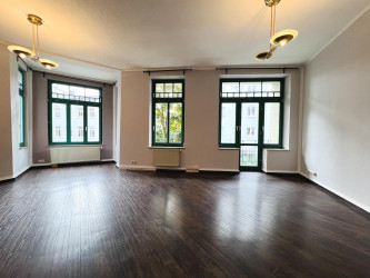 Diese großzügige Wohnetage im 1. Obergeschoss eines stilvollen Gründerzeithauses aus dem Jahr 1908 bietet rund 140 m² Fläche – verteilt auf vier große Zimmer, zwei Bäder und zwei Balkone. Wer Altbau liebt, wer hohe Decken, Licht, Raum und Geschichte schätzt, wird hier das Besondere finden.