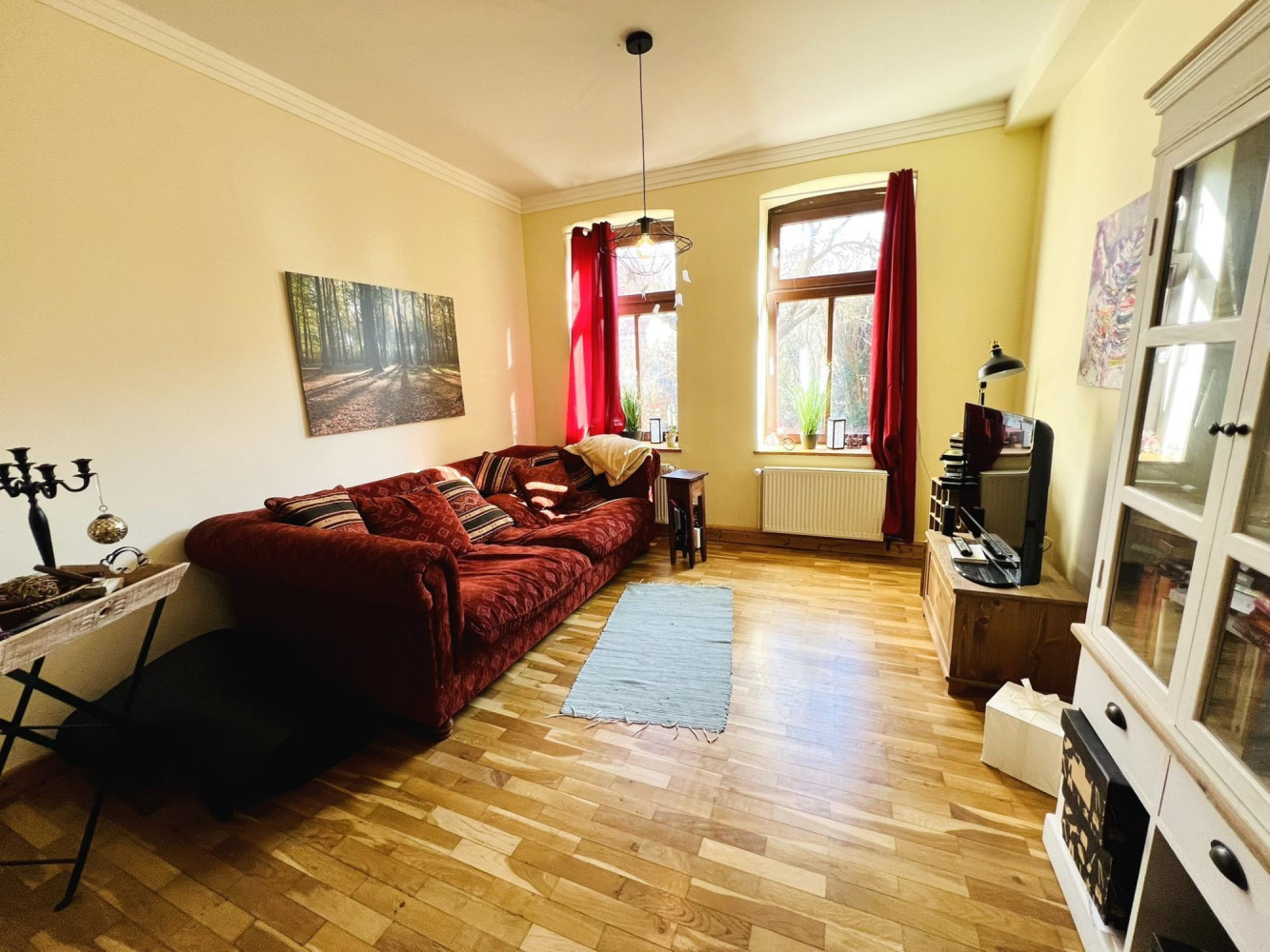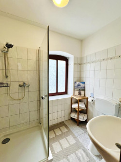 Die Hauptwohnung im Erdgeschoss mit ca. 160 m² Wohnfläche beeindruckt mit 4 Zimmern, Komfortbad mit Wanne und Dusche,