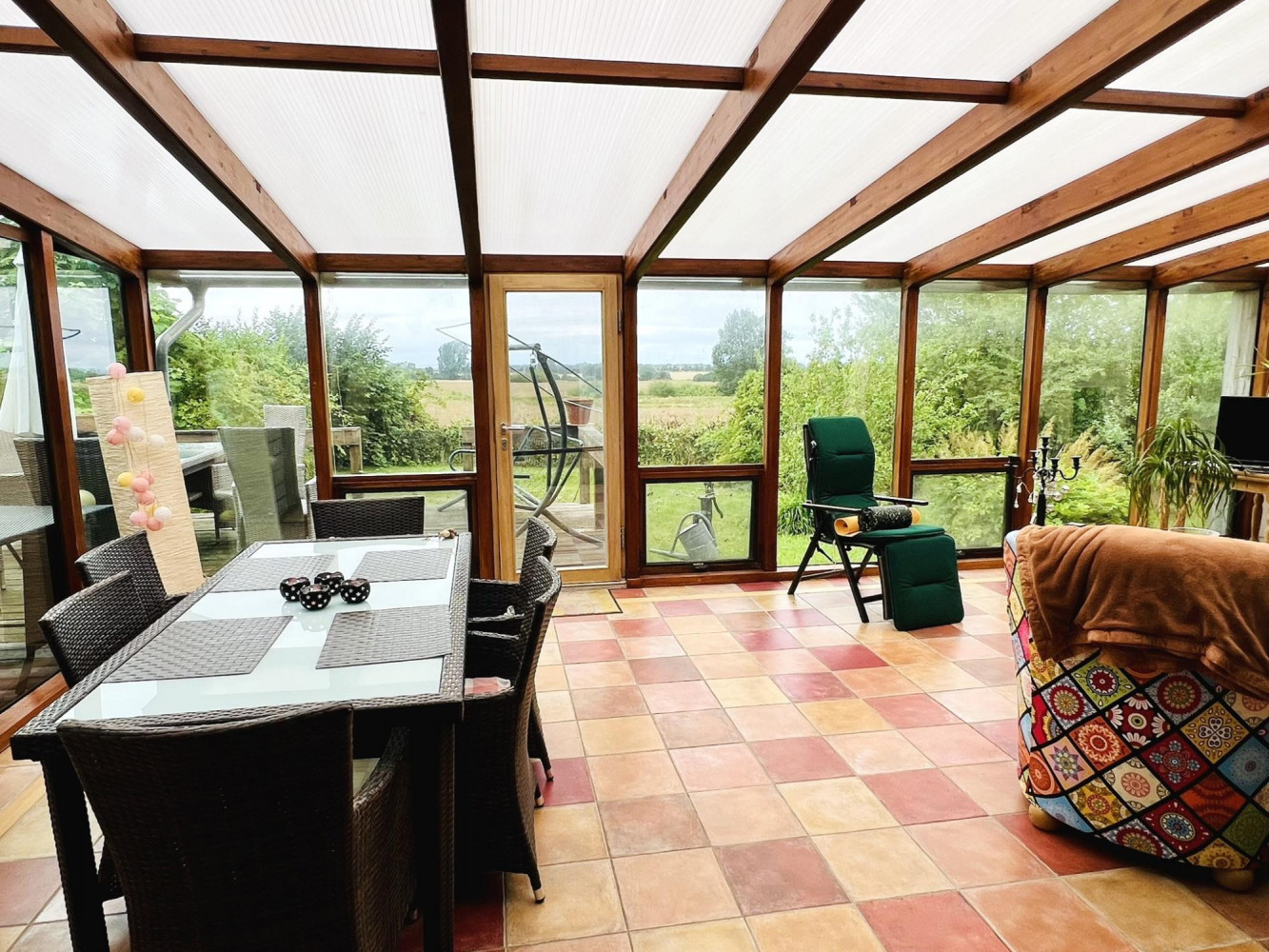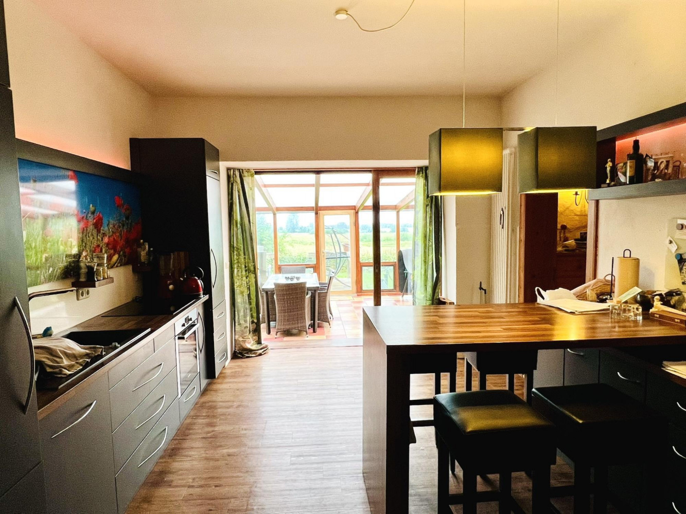 einer geräumige Küche mit Verbindung zu dem ca. 30 m² großen Wintergarten und Gartenterrasse.